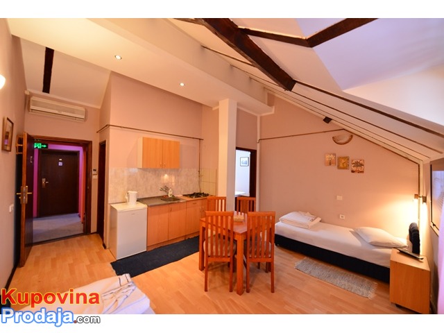 Nedaleko od centra Novog Sada iznajmljujemo apartmane i sobe sa kupatilom. Apartmani u svom sastavu sadrže odvojenu, kompletno opremljenju kuhinju. Svaki apartman i soba su klimatizovani, poseduju TV-kablovsku, bežični i kablovski internet, frižider i garažu za vozila. Parking , klima, internet – free.